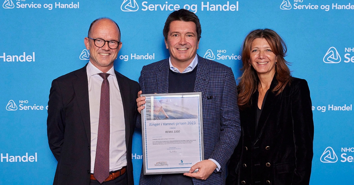03.11.2023 | Arbeid og inkludering, Handel Inkluderingspris til REMA 1000 Vinneren av årets Ringer i Vannet-pris er REMA 1000. Ringer i Vannet er en NHO-utviklet satsing på arbeidsinkludering hvor næringslivets behov står i sentrum.