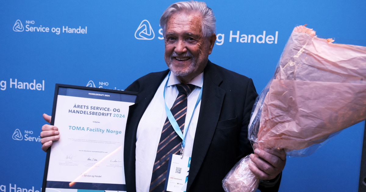 14.11.2024 | Drift og Service, Renhold Toma kåret til Årets service- og handelsbedrift Det bergensbaserte selskapet ble i dag tildelt den prestisjetunge prisen Årets Service og Handelsbedrift. Prisen ble det ut under årskonferansen til NHO Service og Handel 14. november på Oslo Event Hub.