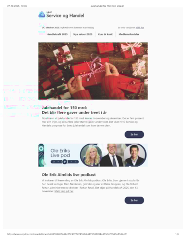 Nyhetsbrevet gir deg det viktigste fra NHO Service og Handel i uke 43 - 2025.